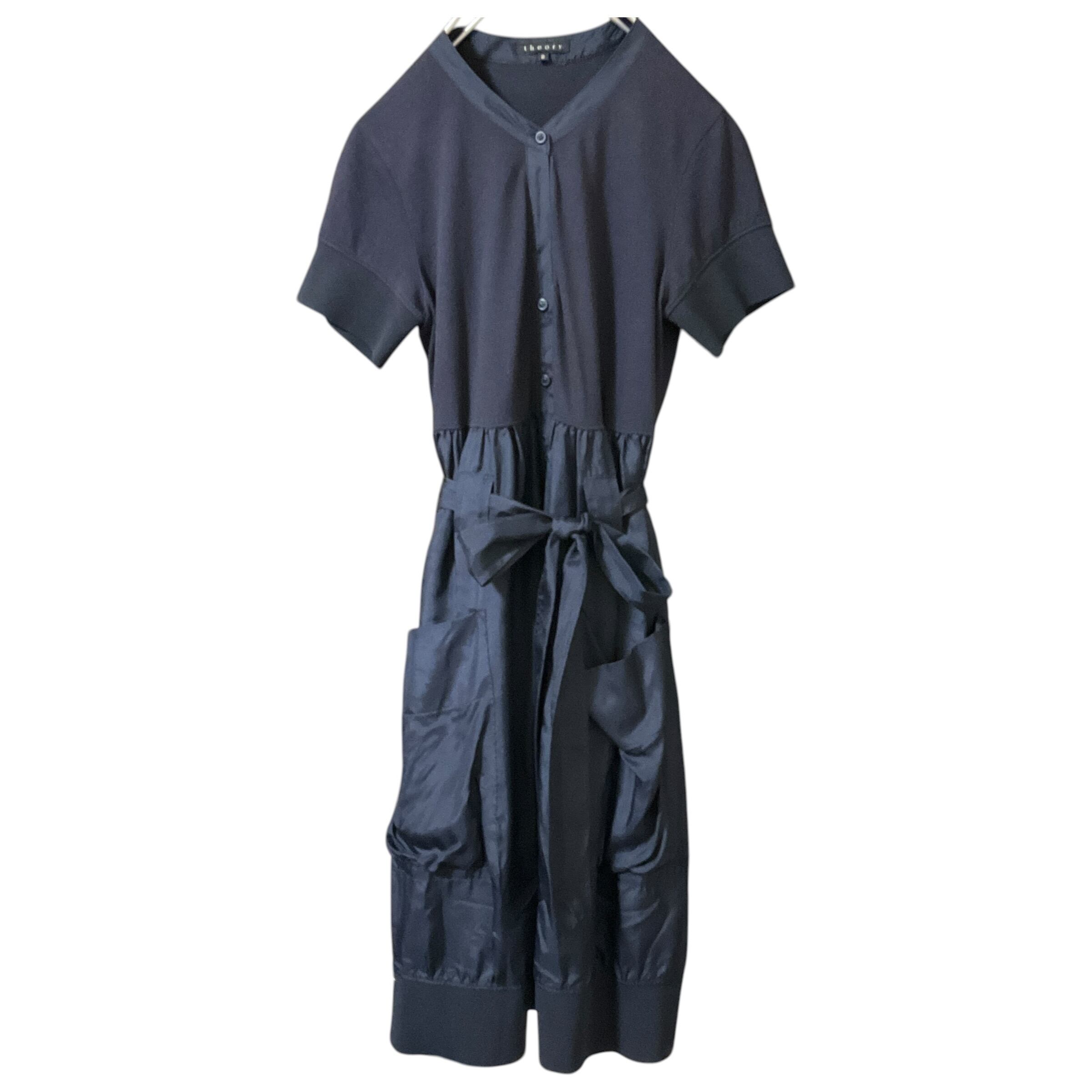 theory半袖膝丈ワンピース上部綿レーヨン下部リブ部分 絹混