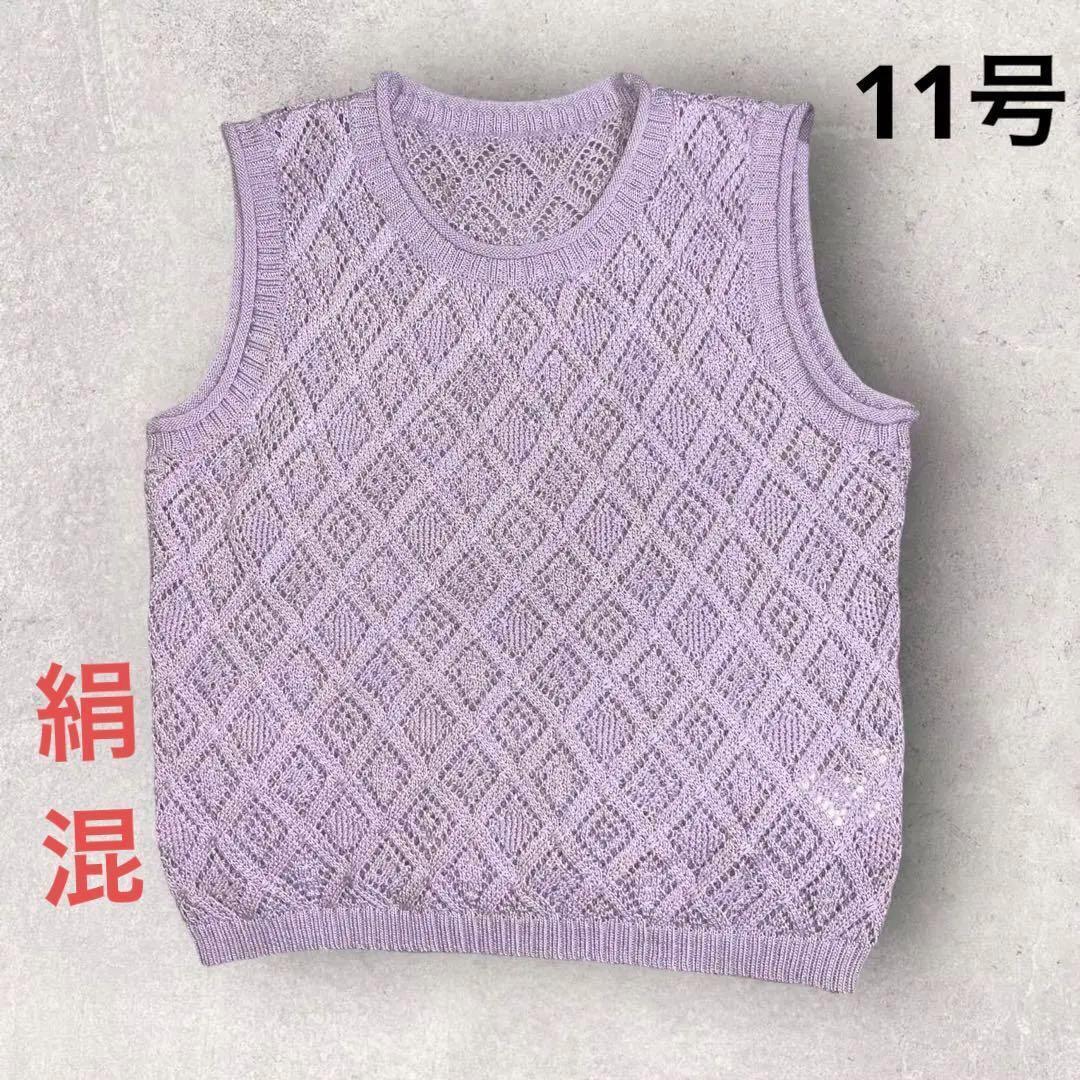 Leilianレリアン絹混サマーニットベスト11号パープル